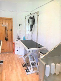 Welcome to the Lakeside Groom Room. Brand new salon with a bespokedesign. Fitted with my clients optimum safety and comfort in mind and to support elderly and nervous canine clients. A calm, quiet and peaceful setting where dogs are groomed one at time.